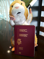 (vu la température, je ne mettrai pas une patte dehors pour le moment...) La descente se fait sans problème, maman a quand même bien mal aux oreilles pendant tout le temps de la manoeuvre (malgré le chewing-gum, mais elle s'y attendait). Ca y est, on est posés sur le sol des Etats-Unis ! A la descente de l'avion, on ne regrette déjà pas d'avoir mis des vêtements d'été (enfin surtout papa et maman, parce que moi... bref...). On se dit que la prochaine étape importante va être de prendre le bus pour aller jusqu'à l'hôtel, mais nous étions très naïfs. C'était sans compter sur la file interminable qu'on a du faire pour faire vérifier nos passeports pour sortir de l'aéroport. C'était comme si le temps s'était arrêté, on se voyait déjà passer la nuit à attendre. Pourtant je me tenais prêt depuis la sortie de l'avion avec les passeports (papa dit que mon passeport doit être belge, maman dit que j'ai la double nationalité, moi, j'y comprends pas grand chose, alors je suis).