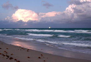 La journée est passée très vite, papa et maman ont parcouru une grosse partie de Miami Beach à pied, petit retour à l'hôtel avant d'aller profiter du premier coucher de soleil sur la plage ! (je n'ai pas eu le droit de venir, soit disant je prenais trop de place dans le sac... bon, je mets quand même les photos, mais c'est bien pour leur faire plaisir).