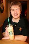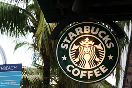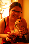 Direction Downtown Miami, en bus ! Arrivés là bas, maman a un peu stressé, on a marché et on s'est retrouvés dans un quartier où on avait l'air d'être les seuls touristes... On a vite fait demi tour pour retrouver un endroit un peu plus vivant, et surtout où les gens ne semblaient pas nous regarder de travers... C'est pas tout ça, mais ça donne soif de marcher... Oh, un Starbucks ! Désolé pour le café de Gibbs (comprenne qui pourra), il fait trop chaud, ce sera thé glacé pour maman et capuccino frappé pour papa. Comme j'ai pas encore droit au café, maman a bien voulu partager avec moi.