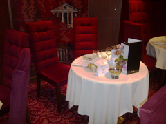 Le soir ils ont un serveur attitré, il s'appelle Mustiko et ils rigolent bien ensemble, même si il ne parle pas français. Le premier soir, papa et maman ont beaucoup rigolé. Ils ne savaient pas trop comment ça allait se passer et se demandaient qui ils auraient à leur table, parce que les francophones sont très rares sur le bateau, et qu'on ne peut pas dire qu'il y ait beaucoup de jeunes. Mais arrivés à leur table, ils se sont rendu compte que contrairement à leurs voisins qui étaient sur des tables de 6 ou 8, ils étaient à une table de... 2 ! Une petite table de deux rien que pour eux ! Ils en rigolent encore !