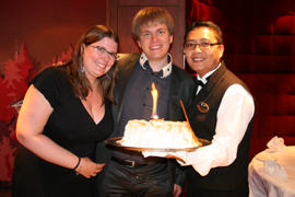 Notre serveur tout au long de la croisière s'appelle Mustiko, il est indonésien et papa et maman s'entendent bien avec lui, ils rigolent beaucoup. Ce soir (31.03.12) ils ont profité de leur dernier repas de Gala pour faire des photos.