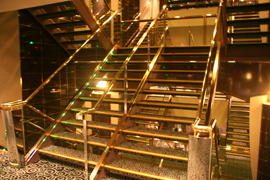 La majorité des lieux publics est située sur les ponts n°5, 6 et 7, on y trouve des bars, des salons, de nombreux restaurants, un casino, une salle de théâtre gigantesque, des salles de jeux de carte, une discothèque, une bibliothèque, des boutiques de toutes sortes, un spa et une salle de sport, sans oublier les bureaux destinés aux renseignements ainsi qu'aux excursions. Bref, j'en oublie beaucoup, mais c'est immense, c'est une vraie ville. Je ne sais pas exactement combien il y a d'escaliers, mais il y a 13 ascenseurs, c'est énorme !